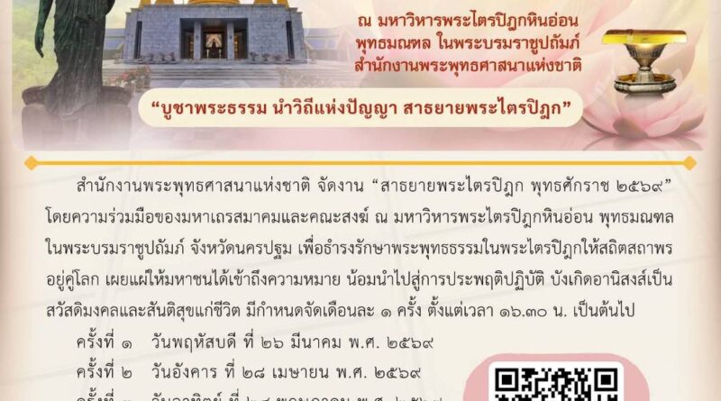 ข่าวประชาสัมพันธ์ pasak 9 เมษายน 25699 เมษายน 2026 โครงการ “สาธยายพระไตรปิฎก พุทธศักราช ๒๕๖๙” สำนักงานพระพุทธศาสนา Read More