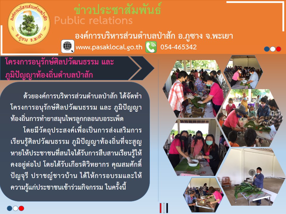 ข่าวประชาสัมพันธ์ โครงการอนุรักษ์ศิลปวัฒนธรรมและภูมิปัญญาท้องถิ่นตำบลป่าสัก pasak 30 มิถุนายน 256630 มิถุนายน 2023