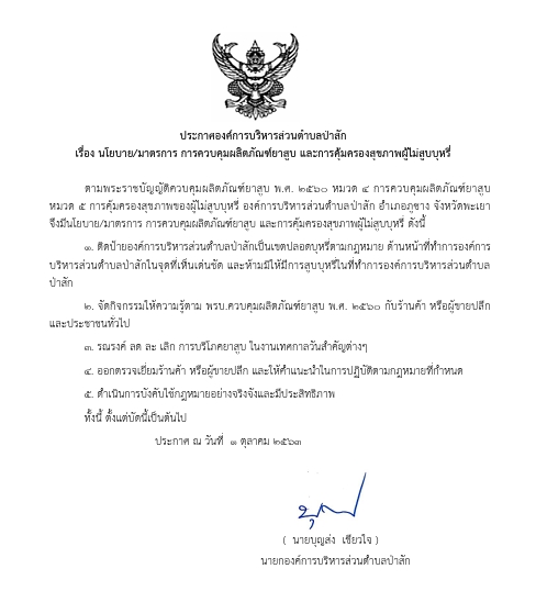 ข่าวประกาศ อบต.ป่าสัก ประกาศนโยบาย/มาตรการ การควบคุมผลิตภัณฑ์ยาสูบ และการคุ้มครองสุขภาพผู้ไม่สูบบุหรี่ ให้ประชาชนในพื้นที่ทราบ pasak3 6 กรกฎาคม 25666 กรกฎาคม 2023