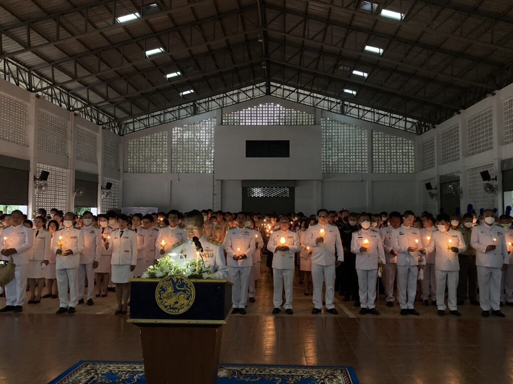 เวลา 18.00 น. พิธีถวายเครื่องราชสักการะและวางพานพุ่ม และพิธีจุดเทียน