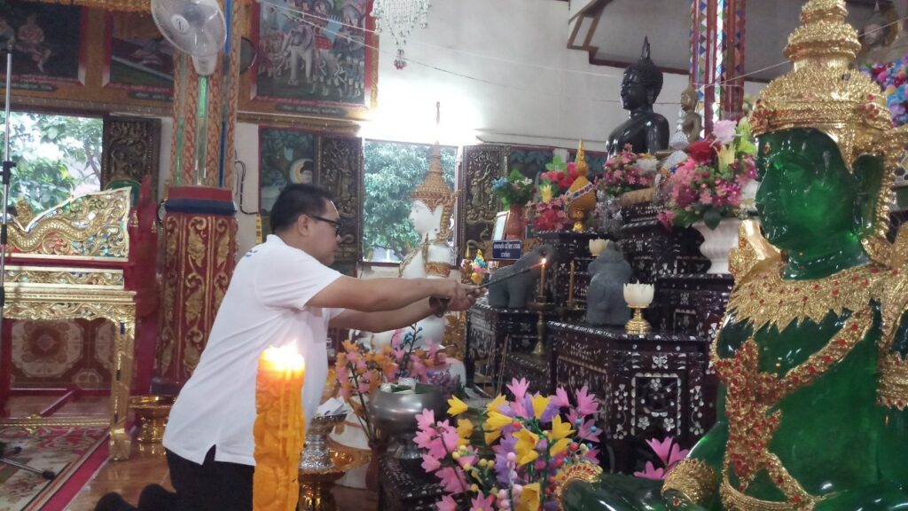วันอาทิตย์ที่ 22 ตุลาคม 2566 เวลา 06.00 น. ณ.วัดบ้านแก หมู่ที่ 1,2,10 ต.ป่าสัก อ.ภูซาง จ.พะเยา นายบุญส่ง เขียวใจ นายกองค์การบริหารส่วนตำบลป่าสัก นำคณะผู้บริหาร สมาชิกสภาองค์การบริหารส่วนตำบลป่าสัก พนักงานส่วนตำบล พนักงานและพนักงานจ้าง เข้าวัดทำบุญวันพระ ขึ้น 8 ค่ำ เดือน 11 (เทศกาลเข้าพรรษา) เพื่อส่งเสริมการนำพลัง”บวร”บ้าน-วัด-โรงเรียน มาเพิ่มเติมบทบาทของวัดให้เป็นแหล่งเรียนรู้ศีลธรรม คุณธรรม จริยธรรมและวัฒนธรรมขององค์กร เพื่อให้ใกล้ชิดพระพุทธศาสนา ได้รับฟังและน้อมนำหลักธรรมคำสอนของพระพุทธศาสนา มากล่อมเกลาจิตใจ นำมาปรับใช้ในชีวิตประจำวัน และเพื่อส่งเสริมประเพณีและวัฒนธรรม ทำนุบำรุงศาสนาให้คงอยู่สืบไป