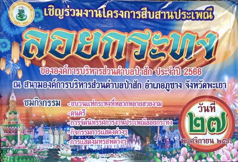 ข่าวประชาสัมพันธ์ องค์การบริหารส่วนตำบลป่าสัก ขอเชิญทุกท่านเที่ยวงานสืบสานประเพณีลอยกระทง ประจำปี 2566 ในวันจันทร์ที่ 27 พฤศจิกายน พ.ศ. 2566 ณ สนามองค์การบริหารส่วนตำบลป่าสัก pasak 24 พฤศจิกายน 256624 พฤศจิกายน 2023