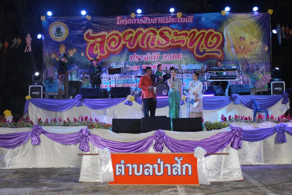 วันที่ 27 พฤศจิกายน 2566 องค์การบริหารส่วนตำบลป่าสัก ได้จัดงานโครงการสืบสานประเพณีลอยกระทง ประจำปี 2566 ขึ้น ณ ลานอเนกประสงค์องค์การบริหารส่วนตำบลป่าสัก โดยนายบุญส่ง เขียวใจ นายกองค์การบริหารส่วนตำบลป่าสัก เป็นประธานในพิธีเปิด พร้อมด้วย คณะผู้บริหารฯ สมาชิกสภา อบต.ป่าสัก กำนัน/ผู้ใหญ่บ้าน ทุกแห่ง พนักงาน/เจ้าที่ อบต.ป่าสัก โดยการจัดงานมีวัตถุประสงค์เพื่อเป็นการแสดงความสำนึกบุญคุณของแม่น้ำ และขอขมาต่อพระแม่คงคา ตลอดจนส่งเสริมการอนุรักษ์วัฒนธรรมประเพณีท้องถิ่นให้คงอยู่สืบไปและภายในงานมีการจัดกิจกรรมการแสดงต่างๆของนักเรียนโรงเรียนในพื้นที่ และการแสดงต่างๆของทางหมู่บ้านทั้ง 10 หมู่บ้าน โดยมีประชาชนมาชมและเที่ยวกันอย่างมากมาย