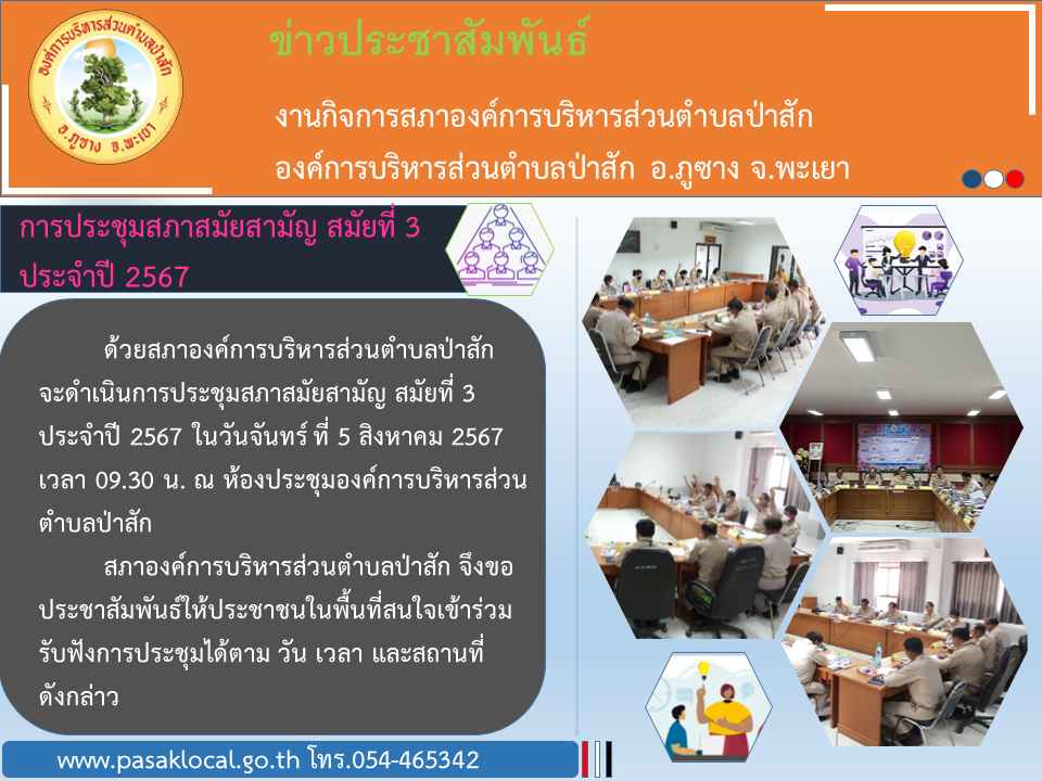 งานกิจการสภา ประชาสัมพันธ์การนัดประชุมสภา สมัยสามัญ สมัยที่ 3 ประจำปี 2567 pasak 2 สิงหาคม 25672 สิงหาคม 2024