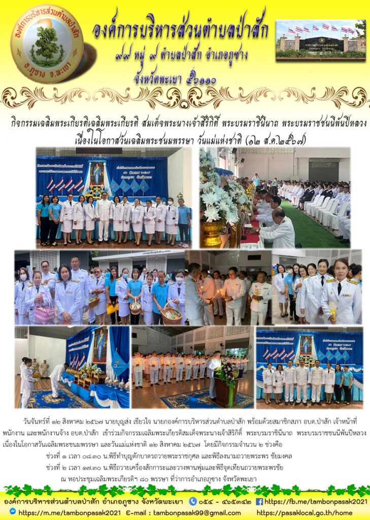 ข่าวประชาสัมพันธ์ กิจกรรมเฉลิมพระเกียรติ สมเด็จพระนางเจ้าสิริกิติ์ พระบรมราชินีนาถ พระบรมราชชนนีพันปีหลวง เนื่องในโอกาสวันเฉลิมพระชนมพรรษา และวันแม่แห่งชาติ (12 ส.ค.2567) pasak 13 สิงหาคม 256713 สิงหาคม 2024