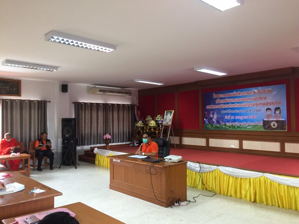 วันที่ 21 กรกฎาคม 2565 นายบุญส่ง เขียวใจ นายกองค์การบริหารส่วนตำบลป่าสัก เป็นประธานพิธี เปิดโครงการอบรมเพิ่มศักยภาพการปฏิบัติงาน เพื่อการพัฒนาตนเองของคณะผู้บริหาร สมาชิกสภา พนักงานส่วนตำบล พนักงานครูและพนักงานจ้าง ณ ห้องประชุมองค์การบริหารส่วนตำบลป่าสัก โดยได้รับเกียรติจากพระครูประดิษฐ์ธรรมสุนทร ท่านธิดา ไกรยนา ท้องถิ่นจังหวัดพะเยา และท่านสมชาย เจนวณิชย์วิบูล์ ได้บรรยายให้ความรู้ให้แก่ผู้เข้าร่วมโครงการ เพื่อเพิ่มพูนความรู้ พัฒนาทักษะ ความสามารถประสิทธิภาพและประสิทธิผลในการปฏิบัติงาน ภายใต้ระเบียบ ข้อกฎหมายที่กำหนด